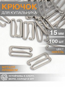Крючок для купальника 15мм металл TBY-915.SW цв.никель, уп.100шт