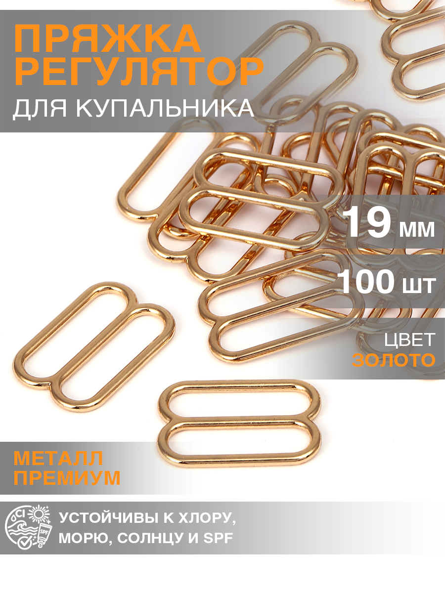 Фурнитура предназначена для пошива купальников, имет глянцевое покрытие, устойчивое к хлору, морской воде, солнцу и солнцезащитным кремам (проходит испытания на устойчивость на фабрике). Товар сертифицирован Oeko-Tex Standard 100