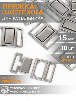 Пряжка-застежка для купальников металл TBY-121SW 15мм цв.никель уп.10шт