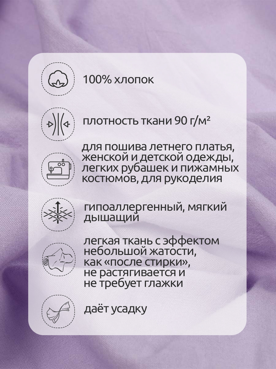 Ткань Хлопок крэш 90 г/м² 100% хлопок шир.150 см арт.TBY.Caw.74 цв.сиреневый уп.5м