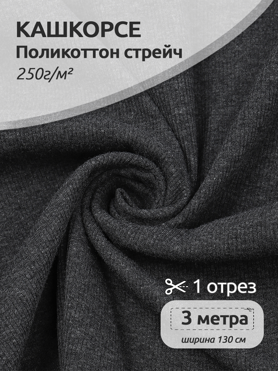 Кашкорсе Поликоттон стрейч 250г/м² RIB 2*2 шир.130см цв.серый меланж 3 в нарезке 3м