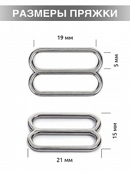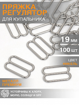 Пряжка регулятор для купальника 19мм металл TBY-819A.SW цв.никель, уп.100шт