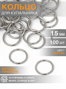 Кольцо для купальника d15мм металл TBY-015D.SW цв.никель, уп.100шт