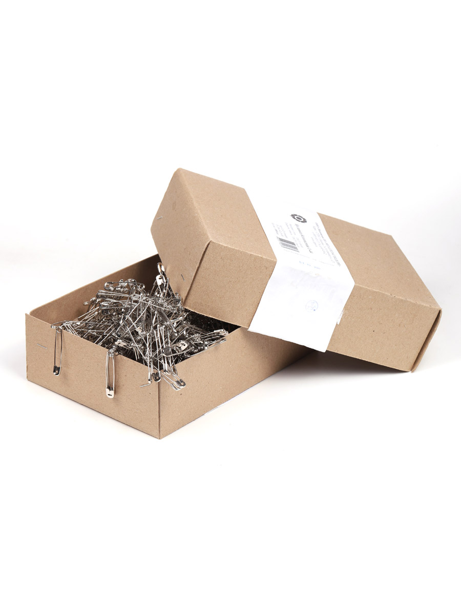 Набор английских булавок. Булавка помогает надежно прикрепить ленточки или значки к сумкам, одежде, она может использоваться в качестве временной застежки на джинсах или юбке, если молния неожиданно сломалась. Английские булавки помогают быстро вдеть шнур или резинку в пояс. Они используются во время изготовления различной бижутерии. Английская булавка является самой безопасной, что объясняется наличием округлой крышки, которая закрывает острую иглу. Булавки для шитья работают с помощью пружинного механизма, который обеспечивает стремительное закрывание и открывание. Большая булавка может использоваться не только для шитья или рукоделия. Это крепкие булавки для постельного белья, которые надежно удерживают одеяло в пододеяльнике или пристегивают простынь к матрасу. Размер: 44мм. Количество: 1000 шт.