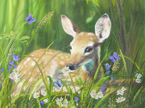 в набор, кроме ткани с нанесенным фоном входит инструкция. Для удобства покупателей подборка цвета бисера указывается под рисунком.