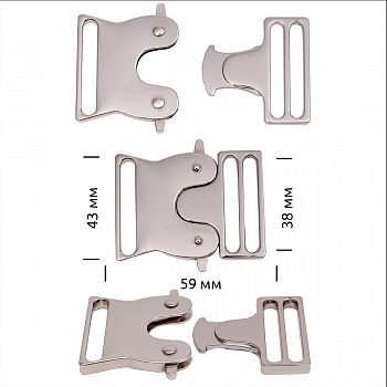 Пряжка-фастекс металл 38мм TBY-E1306 59x43мм цв. никель уп.6шт