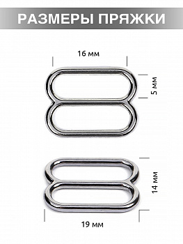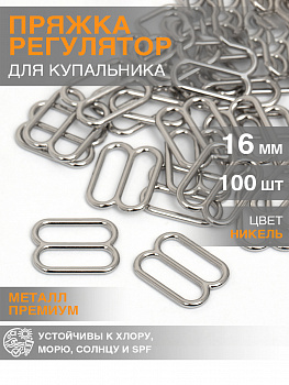 Пряжка регулятор для купальника 16мм металл TBY-816C.SW цв.никель, уп.100шт