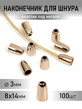 Наконечник пластиковый для шнура TBY.0316 (8,5х14мм, отв.3мм) цв.золото уп. 100шт